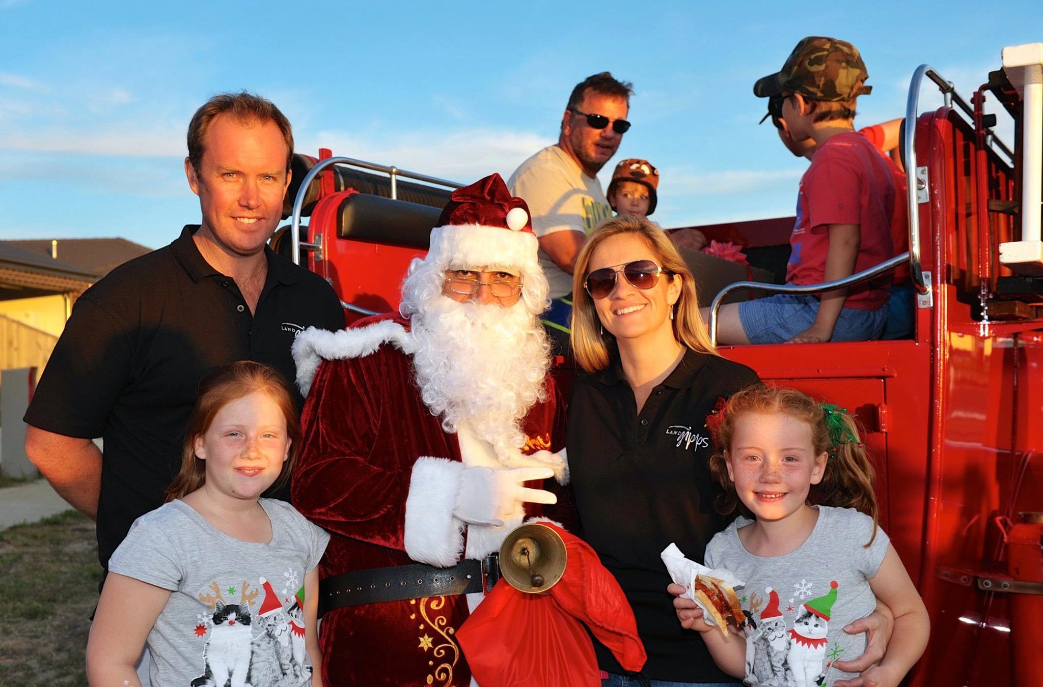 David Sowerby, Director of LandGipps, pictured here at the Heritage Boulevard Christmas party last Friday night with Santa, wife Natalie and daughters Amelia (left) and Isabella (right).