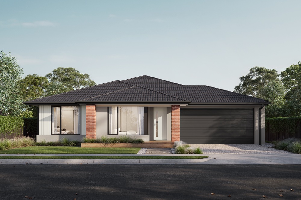 *Price based on home type and floor plan shown and on builder’s preferred siting. Floor plan depicts a traditional facade, modern facade shown and included in price. Image used is an artist impression for illustrative purposes only and may show decorative items not included in the price shown including path, fencing, landscaping, coach lights and furnishings. “From” pricing means that, subject to the terms of this disclaimer and any owner requested changes, the price advertised will be subject to change once fixed site costs and developer guidelines are confirmed. The price is based on an estimate and final pricing may vary if actual site conditions differ to those shown in these developer supplied documents Block and building dimensions may vary from the illustration and the details shown. For more information on the pricing and specification of this home please contact a New Homes Consultant. ABN Group Victoria has permission of the owner of the land to advertise the land as part of the price specified. The price does not include transfer duty, settlement costs, community infrastructure levies imposed or any other fees or disbursements associated with the settlement of the land. © The copyright in this house design (including the floorplan, façade, rooflines and elevations) is owned by Homebuyers Centre®. Homebuyers Centre specifically prohibits any reproduction, communication to the public, publication, or any other use of this house design or a substantial part of it for any purpose other than for the building of houses by Homebuyers Centre without its express written consent